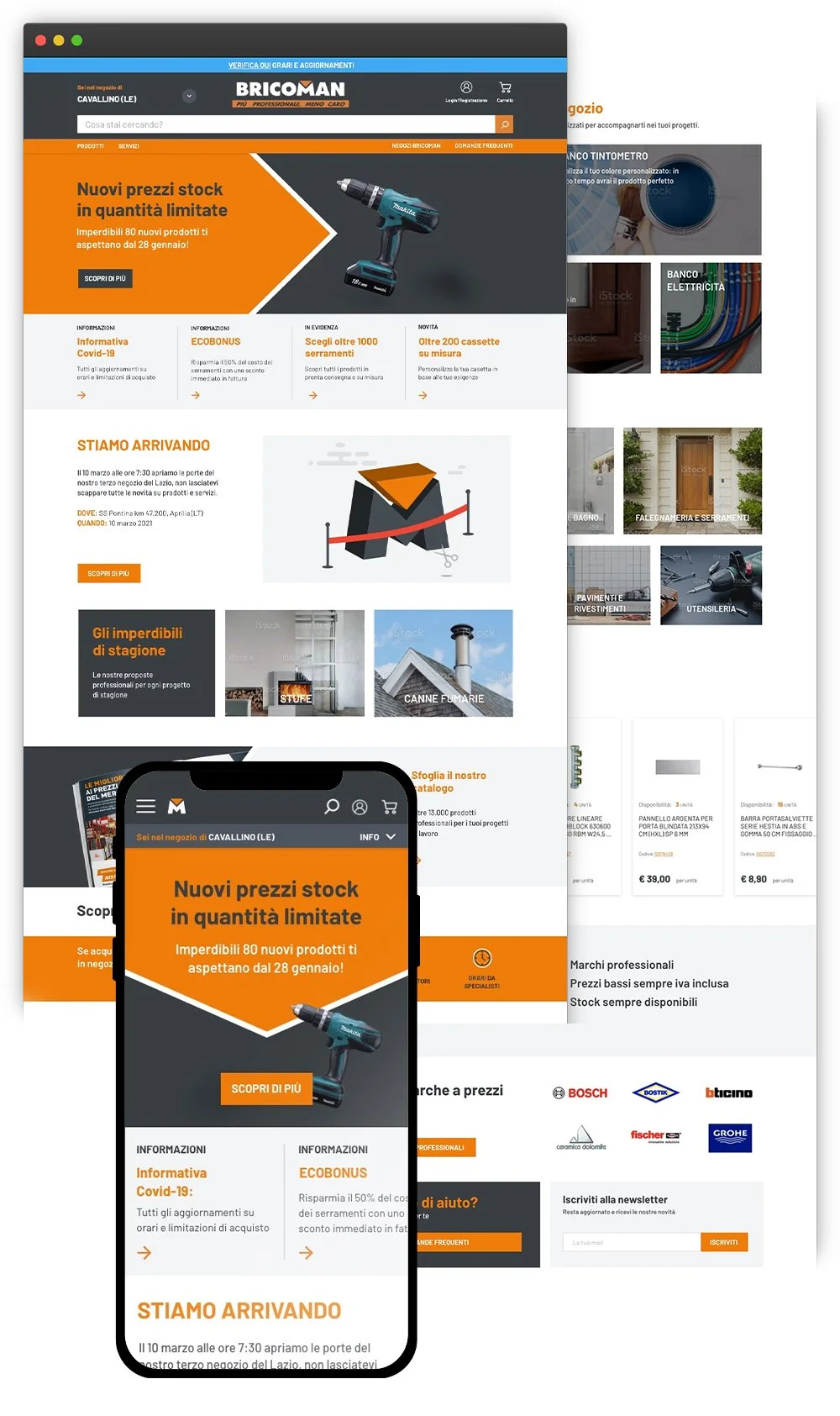 Site redesign for the chain of home improvement and hardware stores Bricoman (now Tecnomat). Homepage, desktop and mobile. Software: Adobe XD